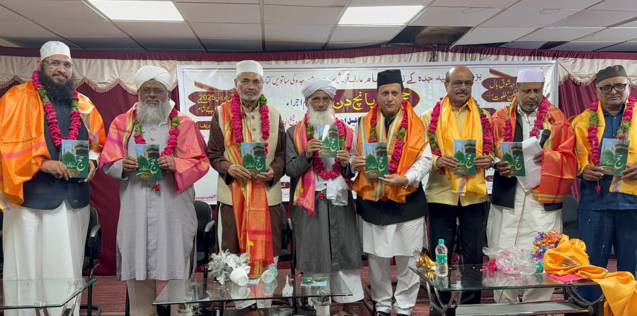 ڈاکٹر ایم اے نعیم ،جناب محمد عبدالجبار افروز، جناب محمد عبدالقدیر اور عازمین حج کی کثیر تعداد شرکت کی تمام حاضرین میں کتاب “حج کے پانچ دن” مفت تقسیم کی گئی۔ کنونیر لطیف الدین لطیف کے اظہار تشکر پراس نورانی اجلاس کا اختتام عمل میں آیا۔