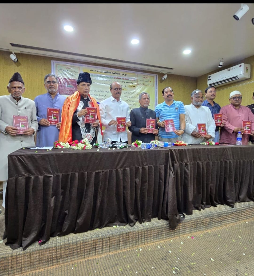 ہوئے مزید کہا کہ ڈاکٹر مسعود جعفری نے اپنی اس کتاب میں حرف اول کے عنوان سے بہت ہی جامع لیکن مختصر انداز میں حضور اکرم صلی اللہ علیہ وسلم کی حیات طیبہ کو بیان کیا ہے ولادت باسعادت سے لے کر اپنے رفیق اعلی سے ملنے تک کا ذکر کرتے ہوئے حضور کے لائے ہوئے انقلاب کی چند جھلکیوں کو نکات کی شکل میں پیش کیا جو قابل مبارک باد ہے ماہر ادب اطفال ڈاکٹر ایم اے قدیر نے جناب مسعود جعفری کو مبارکباد دیتے ہوئے کہا کہ ڈاکٹر مسعود جعفری نے شاعری کے توسط سے صالح اقدار کی پرورش کی ہے وہ بہترین تاریخ داں اور شاعروادیب ہیں انہوں نے کہا کہ شاعری وہی اچھی ہوتی ہے جو زندگی کی حقیقت کو بیان کرے ڈاکٹر فاضل حسین پرویز چیف ایڈیٹر ہفت روزہ گواہ نے ڈاکٹر مسعود جعفری کو مبارکباد دیتے ہوئے کہا کہ حضور اکرم صلی اللہ علیہ وسلم دنیا کی سب سے عظیم شخصیت ہیں انہوں نے کہا کہ قرآنی تعلیمات پر عمل کرنا ہم سب کے لیے ضروری ہے ڈاکٹر فاضل حسین پرویز نے مزید کہا کہ ہم قران کو رٹنے کے بجائے سمجھ کر پڑھنے کی عادت ڈالیں مولانا اسرار احمد اور مولانا تقی عثمانی کی سیرت پر لکھی گئی کتابیں یوٹیوب پر موجود ہیں اور کافی دینی مواد