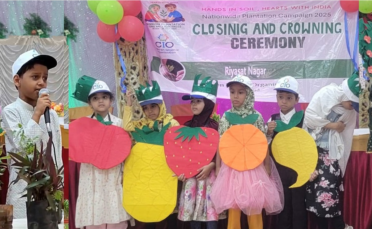حیدرآباد: چلڈرنز اسلامک آرگنائزیشن (سی آئی او) ریاست نگر کی جانب سے منعقدہ شجرکاری مہم کا اختتامی جلسہ اور تقسیم اسناد و انعامات کی تقریب مسعودہ فنکشن ہال، معین باغ میں شاندار انداز میں منعقد ہوئی۔ اس موقع پر بچوں نے شجرکاری اور پودے لگانے کی اہمیت سے متعلق مختلف پروگرامس پیش کر کے شرکاء سے داد وصول کی۔