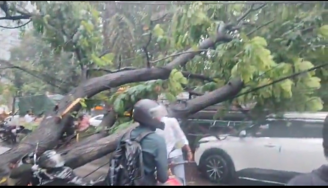 حیدرآباد: شہر میں پیر کی دوپہر اچانک گرج چمک کے ساتھ موسلادھار بارش نے شہریوں کو حیران و پریشان کر دیا۔ گچی باولی کے علاقے میں آسمانی بجلی گرنے کا واقعہ پیش آیا، جس کے باعث مقامی لوگ خوفزدہ ہو کر ادھر اُدھر بھاگنے لگے۔ واقعہ کے وقت سڑک پر کافی بھیڑ تھی لیکن کسی جانی نقصان کی اطلاع موصول نہیں ہوئی۔