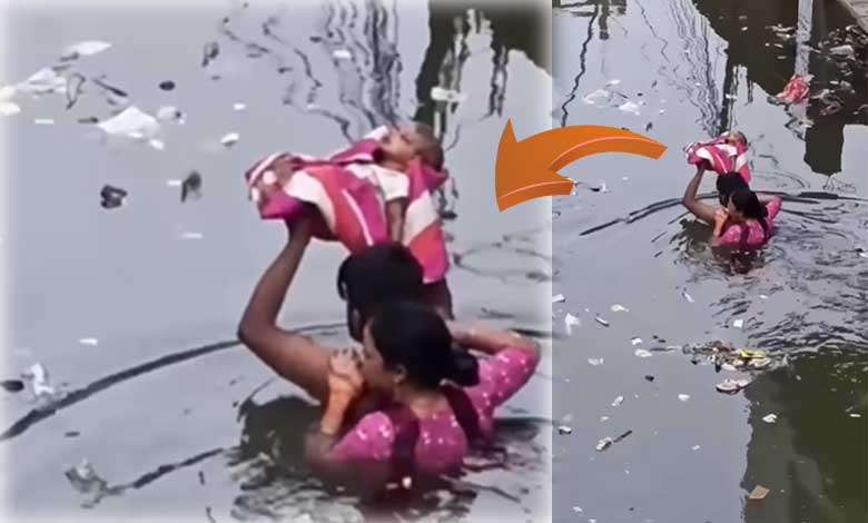 اسی دوران ایک دل دہلا دینے والا اور جذباتی ویڈیو سوشل میڈیا پر وائرل ہورہا ہے، جس میں ایک جوڑا اپنے نومولود بچے کو سیلابی پانی سے بچانے کے لئے جان کی پرواہ کئے بغیر آگے بڑھ رہا ہے۔ یہ منظر دیکھ کر بہت سے لوگوں کو فلم ’باہوبلی‘ کا وہ مشہور منظر یاد آگیا، جس میں رانی شیواجی اپنے نومولود کو بچاتے ہوئے دریا کے بیچ سے گزرتی ہیں۔