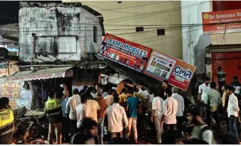 تلنگانہ کے میڑچل ٹاؤن کے مصروف علاقے میں پیر کی رات ایک زوردار گیس سلنڈر دھماکہ ہوا، جس کے نتیجے میں ایک عمارت منہدم ہوگئی۔ دھماکے کے اثر سے تین دکانیں مکمل طور پر تباہ ہوگئیں، جبکہ عمارت کے ملبے کی زد میں آکر سڑک سے گزرنے والا ایک نامعلوم شخص شدید زخمی ہوا اور ہاسپٹل لے جاتے وقت دم توڑ گیا۔