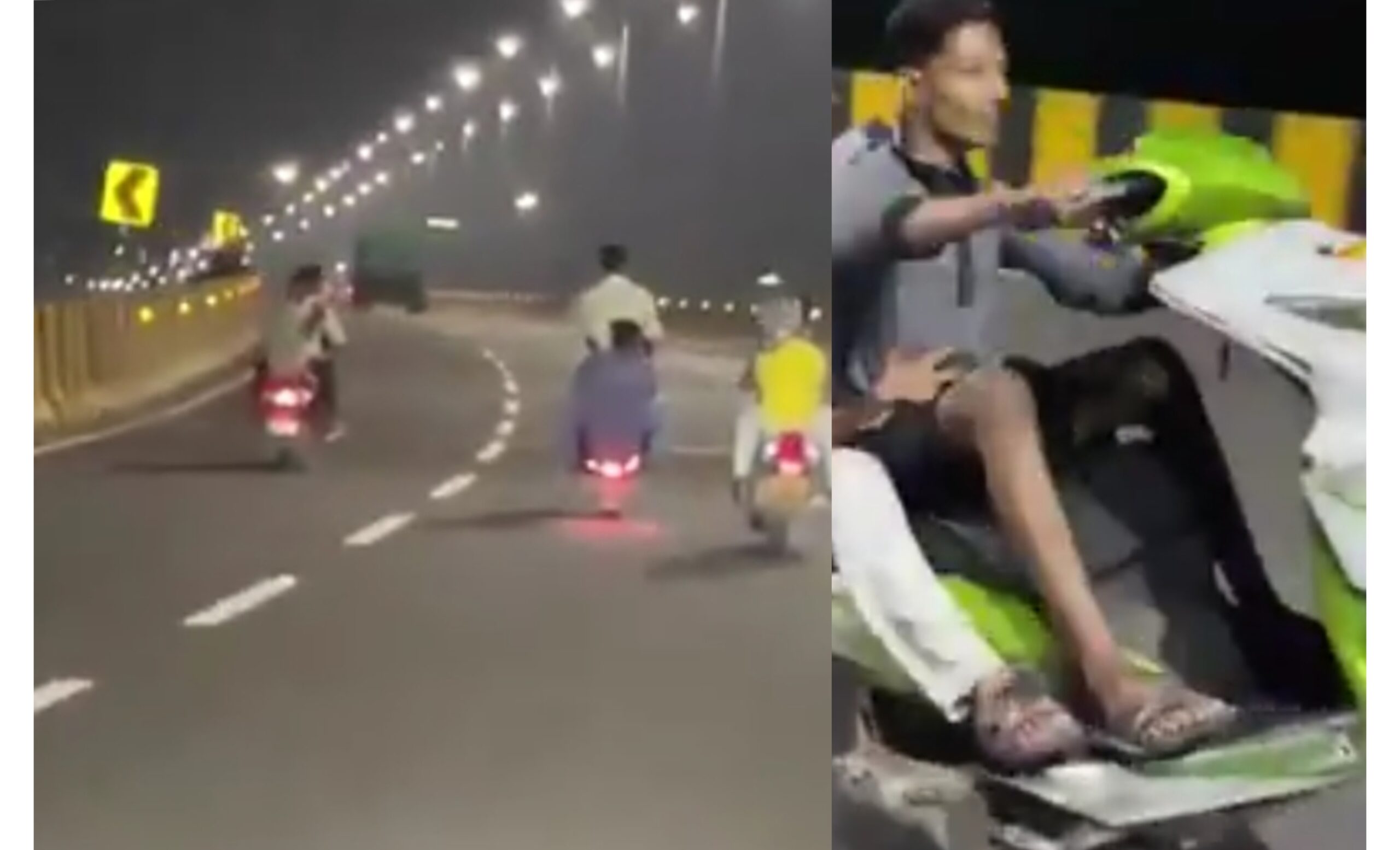 حیدرآباد کے آرام گھر فلائی اوور پر چند نوجوانوں نے بائیک پر خطرناک اسٹنٹس کرتے ہوئے نہ صرف اپنی جان کو خطرے میں ڈالا بلکہ دیگر گاڑی سواروں کو بھی شدید پریشانی میں مبتلا کر دیا۔