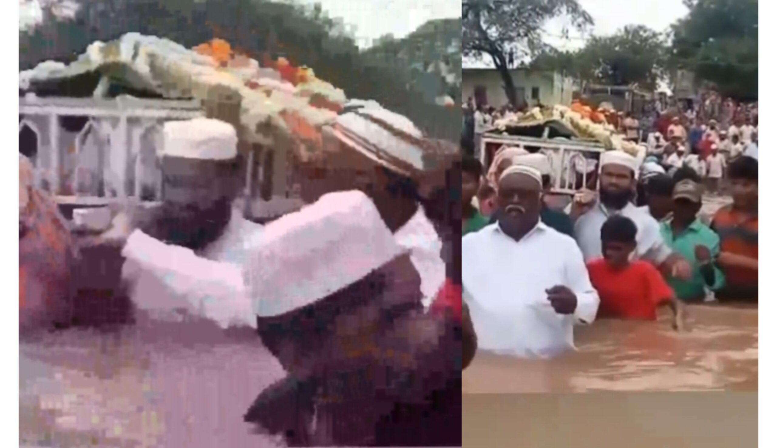 شدید طغیانی اور سیلابی پانی کی  موجودگی کی وجہ سے جنازہ لے جانے والوں کو میت کو ندی کے پار پہنچانا پڑا، کیونکہ پانی کی گہرائی اور تیزی کی وجہ سے کوئی بھی گاڑی یا کسی اور ذریعہ سے میت کو لے جانا ممکن نہ تھا۔