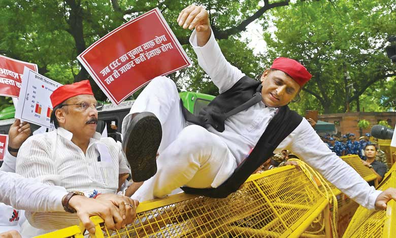 آر جے ڈی اور بایاں بازو جماعتوں کے ارکان نے بھی حصہ لیا۔ عام آدمی پارٹی قائدین بشمول سنجے سنگھ بھی دکھائی دیئے۔ سماج وادی پارٹی قائد اکھلیش یادو بھی بیریکیڈ پر چڑھ گئے تھے۔ احتجاجی ارکان ِ پارلیمنٹ کے سامنے جو بیانر موجود تھا اس پر ایس آئی آر + ووٹ چوری= جمہوریت کا قتل لکھا تھا۔ ایک اور بیانر پر ایس آئی آر لوک تنتر پر وار درج تھا۔ کئی ارکان ِ پارلیمنٹ نے پوسٹرس اور پلے کارڈس تھام رکھے تھے۔