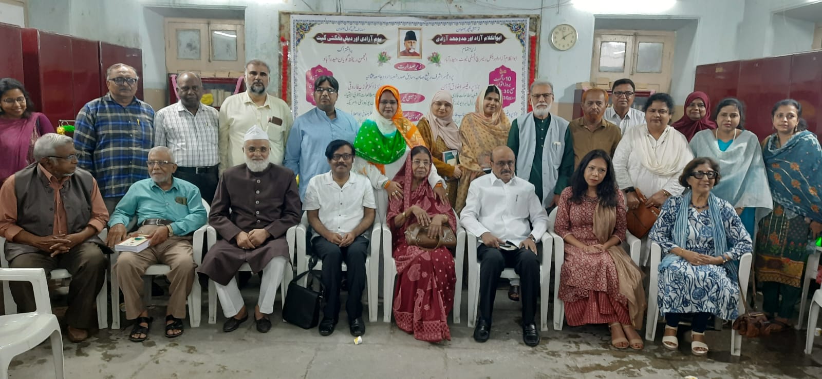 مقدم کیا اور کہا کہ ان عظیم مہمانوں کی آمد اور مولانا ابوالکلام ازاد کی شخصیت پر اظہار خیال سے ہم سب کی معلومات میں زبردست اضافہ ہوا ہے ڈاکٹر حمیرہ سعید نے کاروائی چلائی ڈاکٹر عطیہ مجیب عارفی نے انتہائی منفرد اور دل نشین انداز میں قومی گیت پیش کرتے ہوئے سامعین کا دل موہ گیا محترمہ صائمہ متین نے بھی بچوں کے لیے گیت پیش کیا محترمہ رفیعہ نوشین نے کہا کہ مولانا آزاد نے انقلاب زندہ باد کے نعرے کے ذریعے تحریک آزادی میں زبردست جوش و خروش پیدا کیا تھا انہوں نے کہا کہ اندرا گاندھی سروجنی نائڈو ،بیگم رقیہ ثقافت حسین ، ارونا آصف علی اور دیگر خواتین نے ازادی ہند اور قومی یکجہتی
