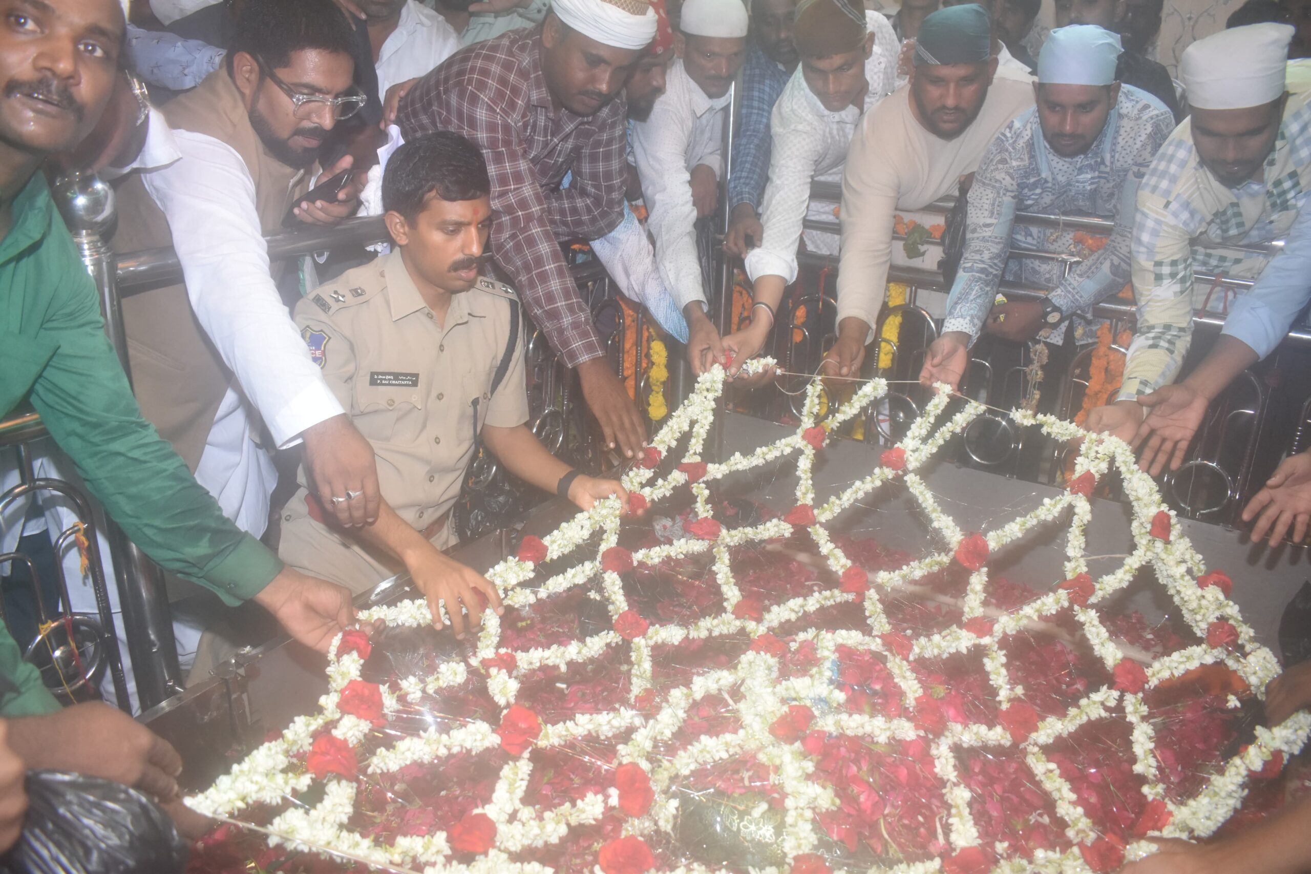 درگاہ حضرت جلال بخآری واقع رنجل بیس بودھن کا سالانہ عرسہ شریف کی سہ روزہ تقریب کے موقع پر کمشنر پولیس نظام آباد پی سائی چیتنا نے درگاہ حضرت جلال بخآری پر بصد احترام و عقیدت چادر چڑھائی اور قوالی کے پروگرام میں میں شرکت کی کمشنر پولیس پی سائی چیتنا نے عرس شریف کے موقع پر پولیس بندوست کا جائزہ لیا