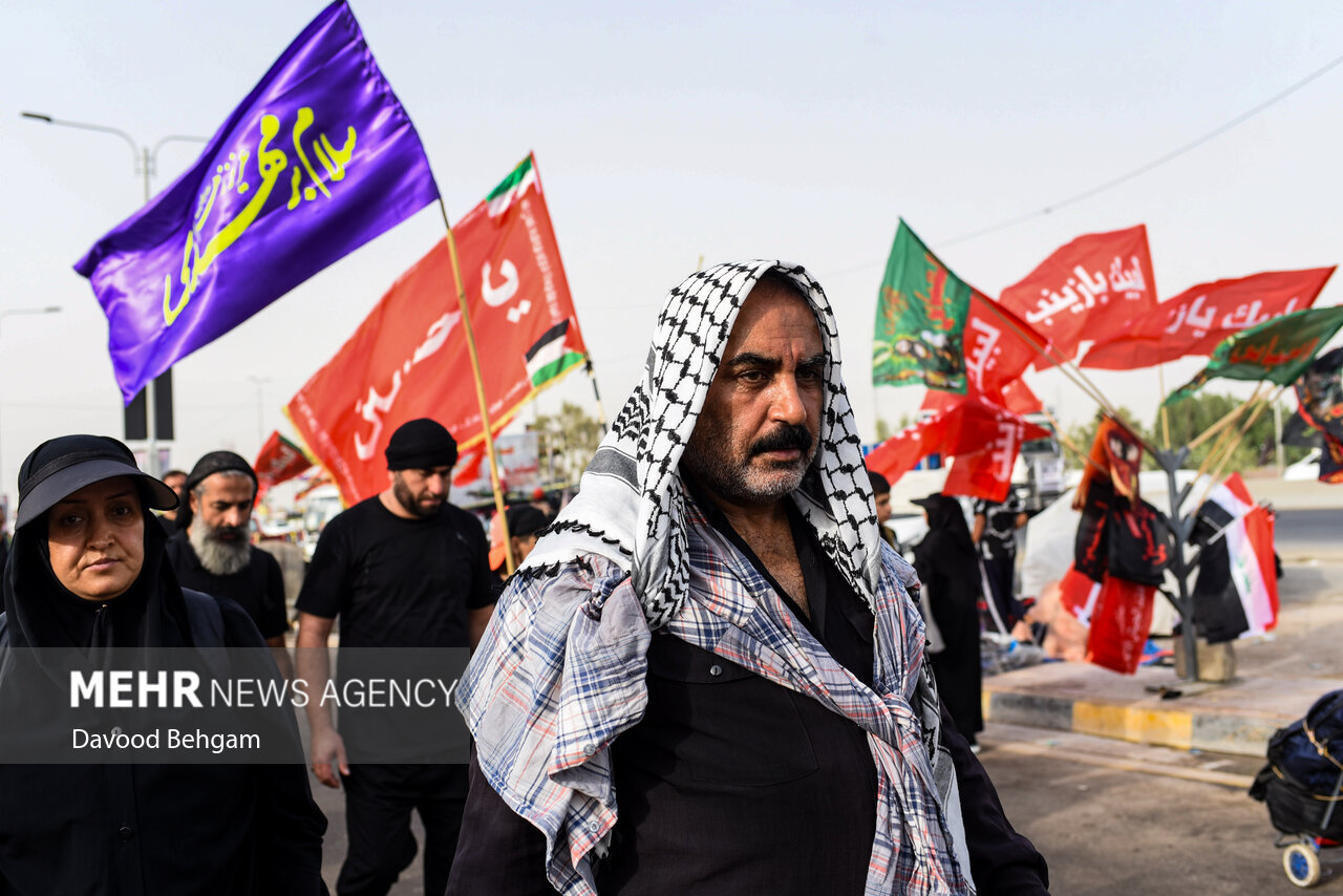 اربعین کے موقع پر عراق میں موجود زائرین شدید گرمی کے باوجود نجف سے کربلا کی طرف پیدل سفر کر رہے ہیں۔