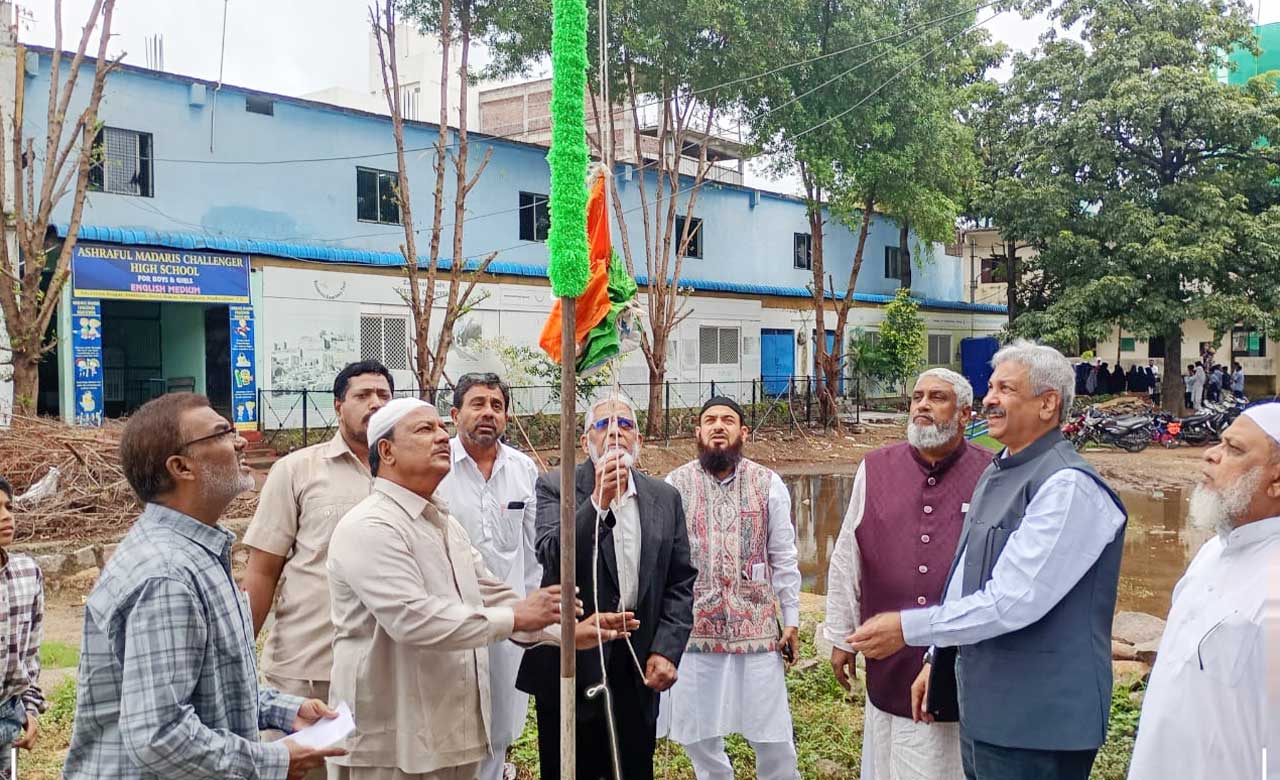 حیدرآباد: اشرف المدارس ہائی اسکول املی بن یاقوت پورہ حیدراباد میں جشن یوم آزادی تقریب منائی گئی مہمان خصوصی ڈاکٹر افتخار صاحب نے پرچم کشائی کی اس کے بعد تقریب کا اغاز قرات کلام پاک سے کیا گیا ۔