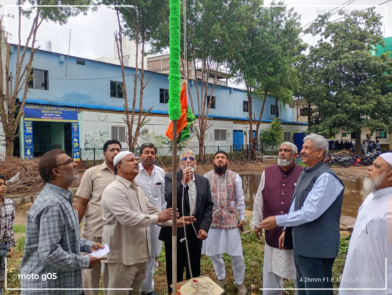 حیدرآباد ۔اشرف المدارس ہائی اسکول املی بن یاقوت پورہ حیدرآباد میں جشن یوم آزادی تقریب منائی گئی مہمان خصوصی ڈاکٹر افتخار صاحب نے پرچم کشائی کی اس کے بعد تقریب کا اغاز قرات کلام پاک سے کیا گیا اسکول کے جوائنٹ سیکرٹری سید عبدالماجد صاحب نے خیر مقدمی تقریر کی