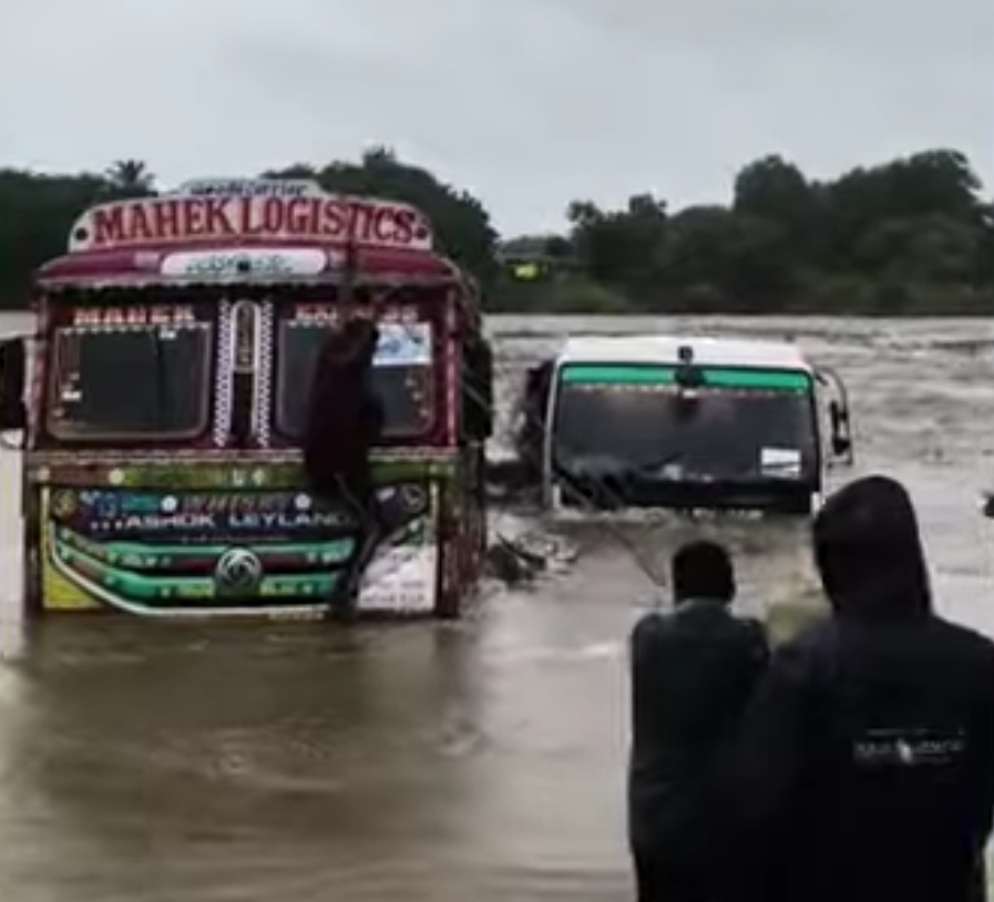 ڈرائیور ندی عبور کرتے وقت سیلاب میں پھنس گیا۔ڈرائیور نے ہوشیاری کا مظاہرہ کرتے ہوئے فوراً لاری کی چھت پر چڑھ کر خود کو بچایا۔ مقامی لوگوں کی دی گئی اطلاع کی بنیاد پر پولیس وہاں پہنچی