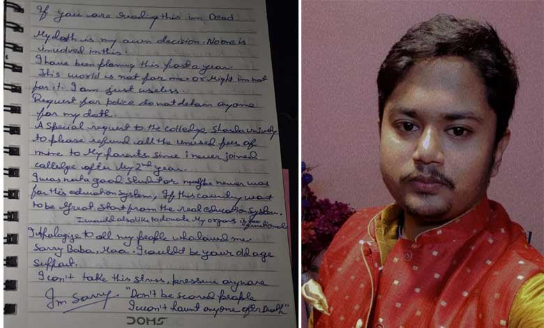 بی ٹیک طالب علم نے کی خودکشی، طالب علم کا دردناک سوسائیڈ نوٹ (ویڈیو)