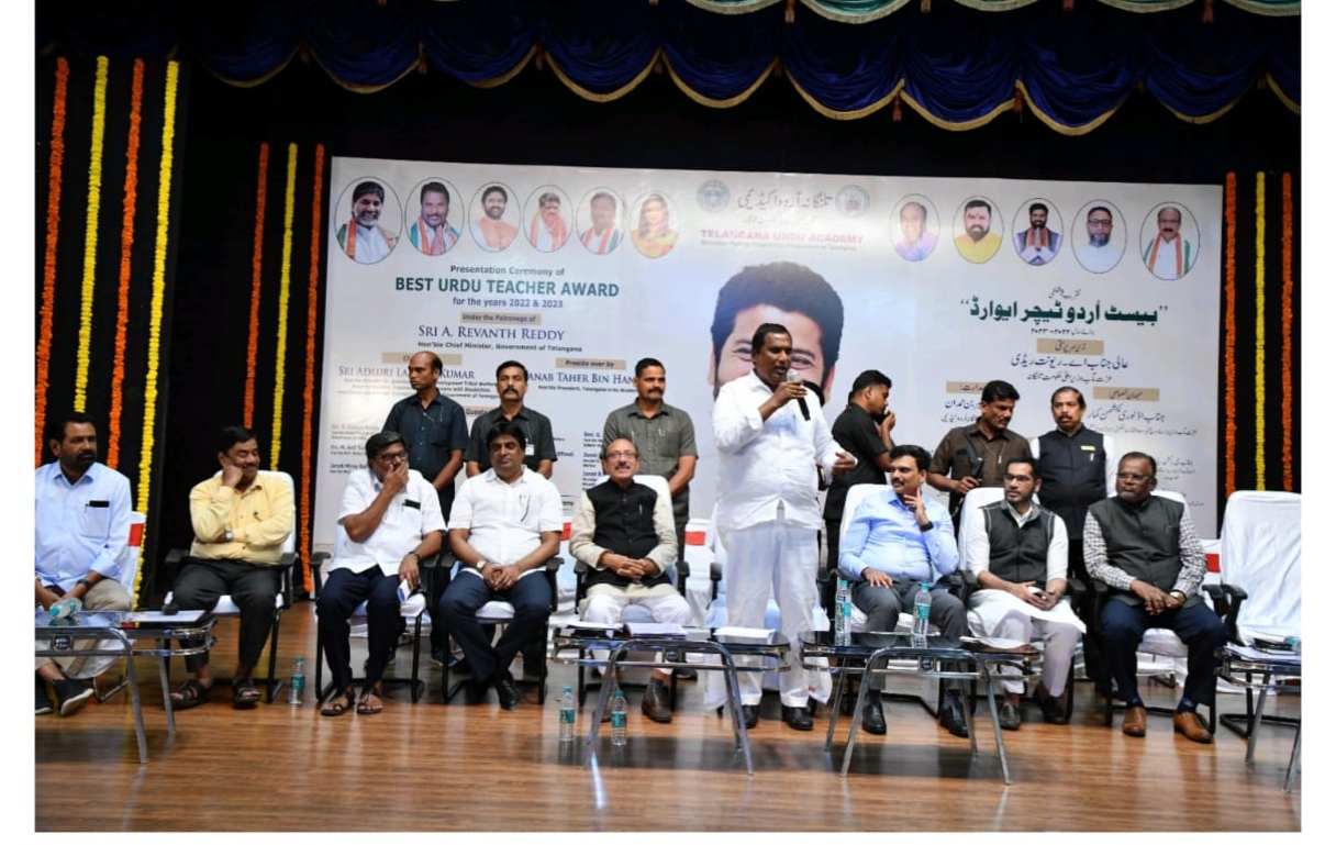 ان خیالات کا اظہار مہمان خصوصی ریاستی وزیراقلیتی بہبود اڈلوری لکشمن کمار نے آج تلنگانہ اُردو اکیڈیمی کی جانب سے بیسٹ اُردو ایوارڈس کی تقریب سے خطاب کرتے ہوئے کیا۔ آج حیدرآباد میں بھارتیہ ودیا بھون بشیر باغ کنگ کوٹھی روڈ پر ریاست تلنگانہ سے تعلق رکھنے والے 173 اساتذہ کو بیسٹ اُردو ٹیچر س ایوارڈس سے نوازا گیا۔