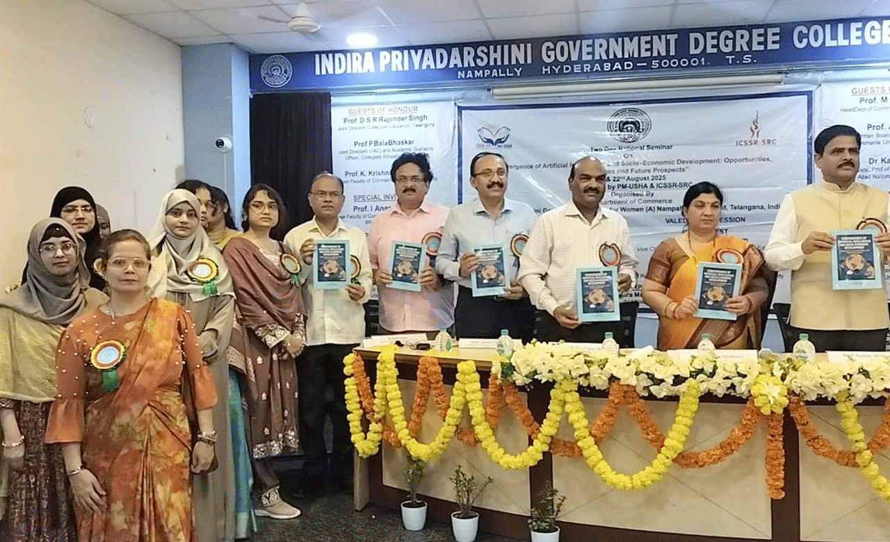 حیدرآباد:اندرا پریہ درشنی گورنمنٹ ڈگری کالج، حیدرگوڑہ کے شعبۂ کامرس کے زیرِ اہتمام ’’مصنوعی ذہانت اور سماجی و اقتصادی ترقی کی ہم آہنگی: مواقع، چیلنجز اور مستقبل کے امکانات‘‘ کے موضوع پر دو روزہ قومی سمینار کا آغاز 21 اگست کو کالج سیمینار ہال میں عمل میں آیا۔ اس پروگرام کو پردھان منتری شکشا ابھیان (PMUSHA) اور آئی سی ایس ایس آر (ساؤتھ انڈیا ریجنل سنٹر، حیدرآباد) کا تعاون حاصل رہا۔