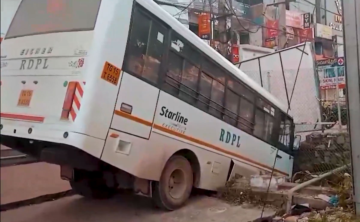 اطلاعات کے مطابق جیڈی میٹلا پولیس اسٹیشن حدود میں واقع قاضی جی پلی کے آر ڈی پی ایل کمپنی کی بس، شاہ پور نگر کے آدرش بینک کے قریب بے قابو ہوکر ایک موٹر سائیکل سے ٹکرا گئی اور پھر سڑک کنارے موجود کلورٹ میں جاگری۔