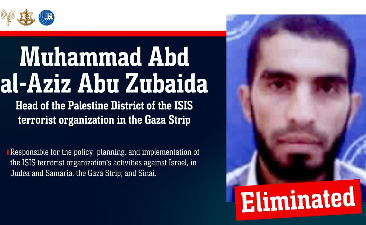 آئی ڈی ایف نے اس شخص کی شناخت محمد عبدالعزیز ابو زبیدہ کے نام سے کی ہے، جو غزہ کی پٹی میں آئی ایس کے فلسطینی ضلع کے سربراہ کے طور پر کام کرتا تھا، جو کہ اس علاقے میں گروپ کے اندر سب سے سینئر عہدہ تھا۔