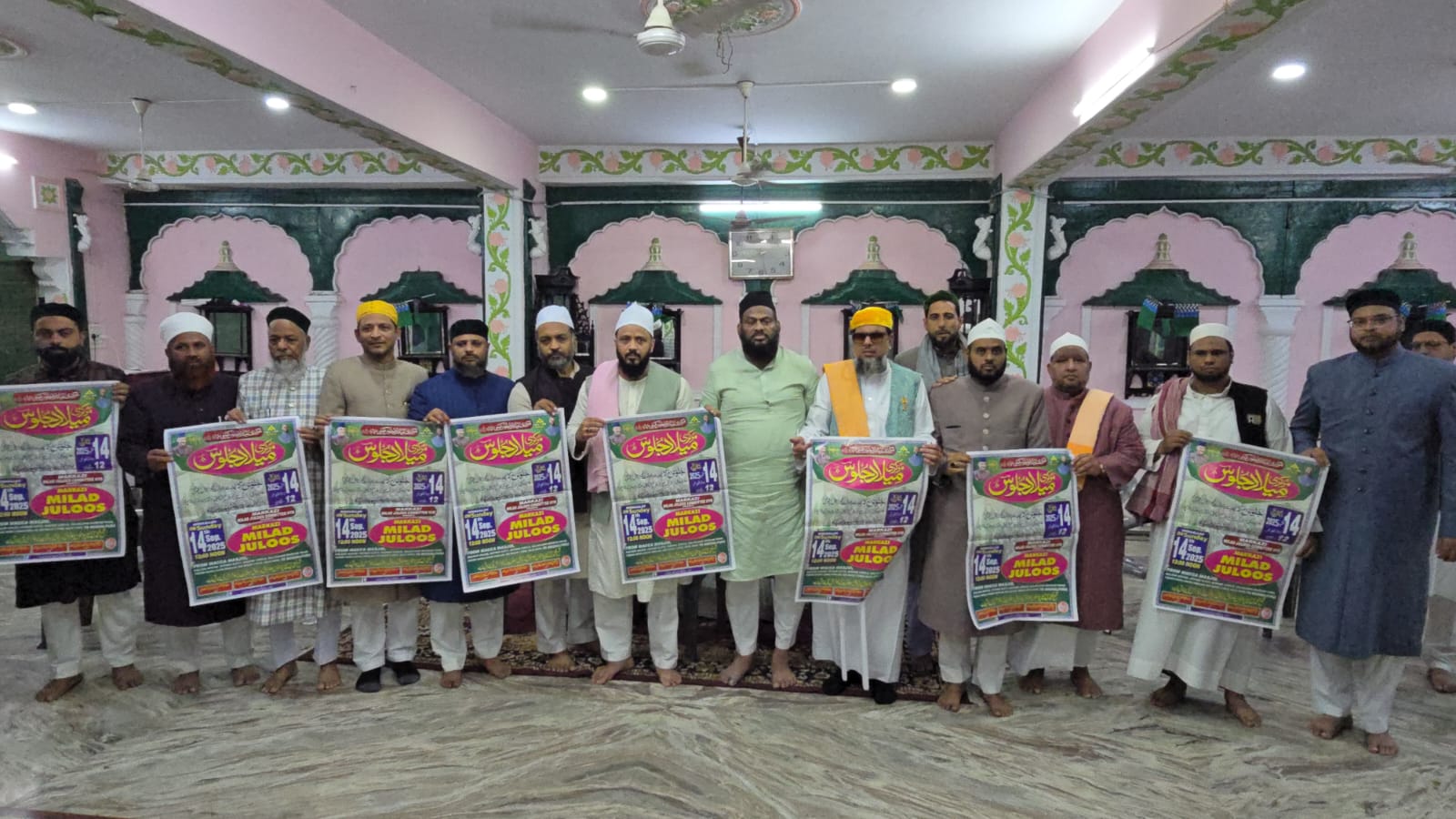 اس اجلاس میں مرکزی میلاد جلوس کی تیاریوں کو قطعیت دے دی گئی اور اس موقع پر علماء و مشائخ کے ہاتھوں مرکزی میلاد جلوس کے پوسٹر کی رسم اجراء عمل میں آئی۔ مولانا سید قادر محی الدین قادری جنید پاشاہ زرین کلاہ معتمد کمیٹی نے خیر مقدم کیا۔ صدر کمیٹی نے اس موقع پر کمیٹی کے دیگر عہدیداروں کے ناموں کا اعلان کیا۔