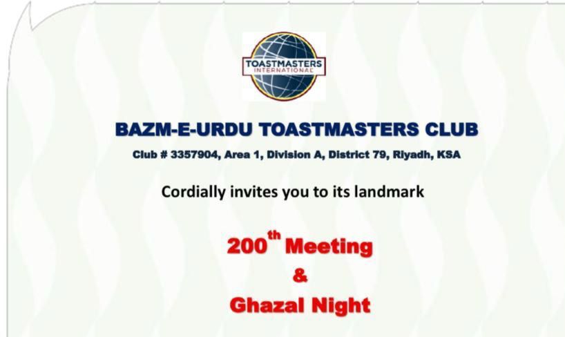 بزم اردو ٹوسٹ ماسٹرز کلب ریاض کا 200 واں اجلاس و شب غزل پروگرام