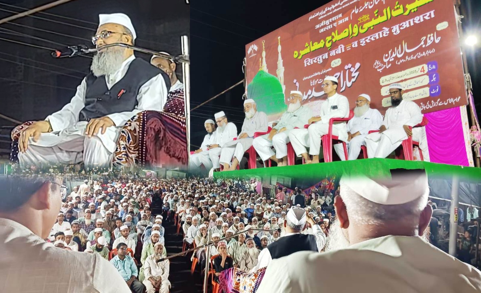 8/ ستمبر ( دھولیہ ) جمعیۃ علماء ( مولانا ارشد مدنی ) کے زیرِ اہتمام سالہائے گزشتہ کی طرح اِمسال بھی جلسہء سیرت النبی صلی اللہ وسلم و اصلاحِ معاشرہ کا انعقاد کیا گیا ۔ جلسے کا آغاز مولوی مظفر قاسمی نے قرآنِ کریم کی تلاوت سے فرمایا ۔* *نعتِ رسول صلی اللہ علیہ وسلم کے خوشبودار اشعار سے اپنی پُرسوز آواز میں مفتی خالد رحمانی نے محفل کو معطر کیا ۔