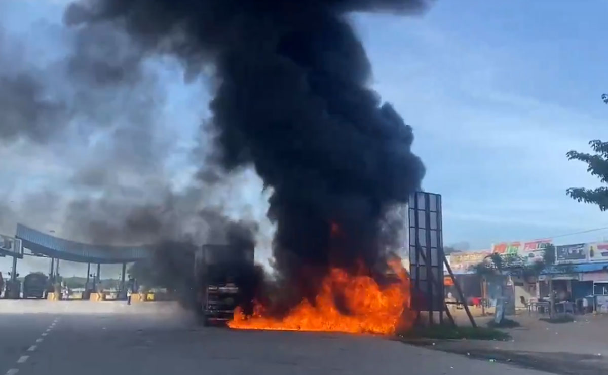 حیدرآباد: تلنگانہ کے نظام آباد ضلع کے اندل وائی ٹول پلازہ پر ایک کنٹینر لاری کے ڈیزل ٹینک میں آگ لگنے کے بعد آگ بھڑک اُٹھی۔