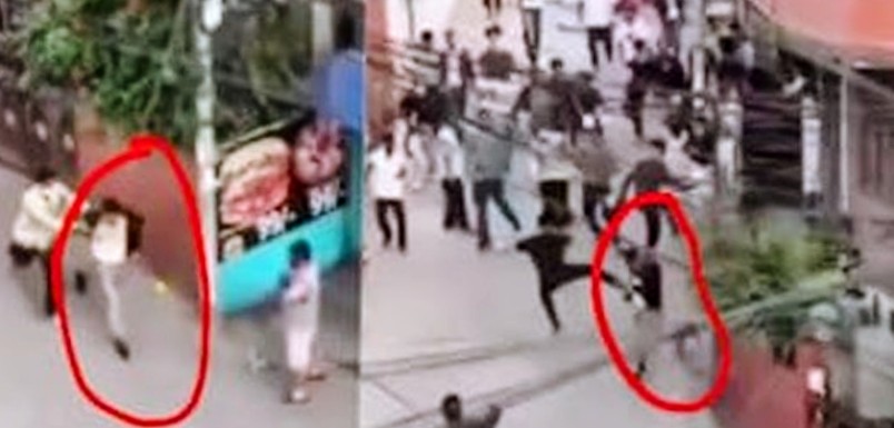 دوران ایک نوجوان مظاہرین میں سے ایک نے اچانک ان پر حملہ کر دیا جس سے وہ توازن کھو بیٹھے اور قریبی دیوار سے ٹکرا کر گر پڑے۔ لیکن حملہ آور مظاہرین سے بچنے کے لیے وہ دوبارہ دوڑنے لگے۔ یہ پرتشدد مناظر عوام کو پریشان کر رہے ہیں۔