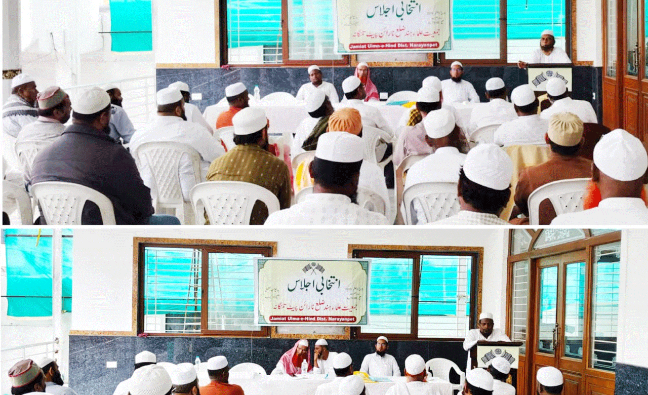 جمعیتہ یونٹس کے علاوہ ملک میں مسلمانوں اور ملت اسلامیہ کو درپیش چیلینجیس اور حالات پر سیر حاصل روشنی ڈالی، اس اجلاس کی کارروائی ونظامت کے فرائض مولانا حافظ عبد الحمید رشادی جنرل سیکریٹری جمعیتہ علما ضلع نارائن پیٹھ نے کی اور تمام مہمانان کرام کا استقبال کرتے ہوئے اجلاس کے اغراض ومقاصد پر روشنی ڈالی، اس اجلاس میں تمام شرکاء کے اتفاق رائے کے ساتھ بلا مقابلہ اگلی میعاد کیلئے مولانا حافظ عبد القوی حسامی کو دوبارہ صدر ضلع جمعیتہ علماء نارائن پیٹھ، اور مولانا حافظ عبد الحمید رشادی کو جنرل سیکریٹری ضلع جمعیتہ علماء نارائن پیٹھ منتخب کیا گیا۔