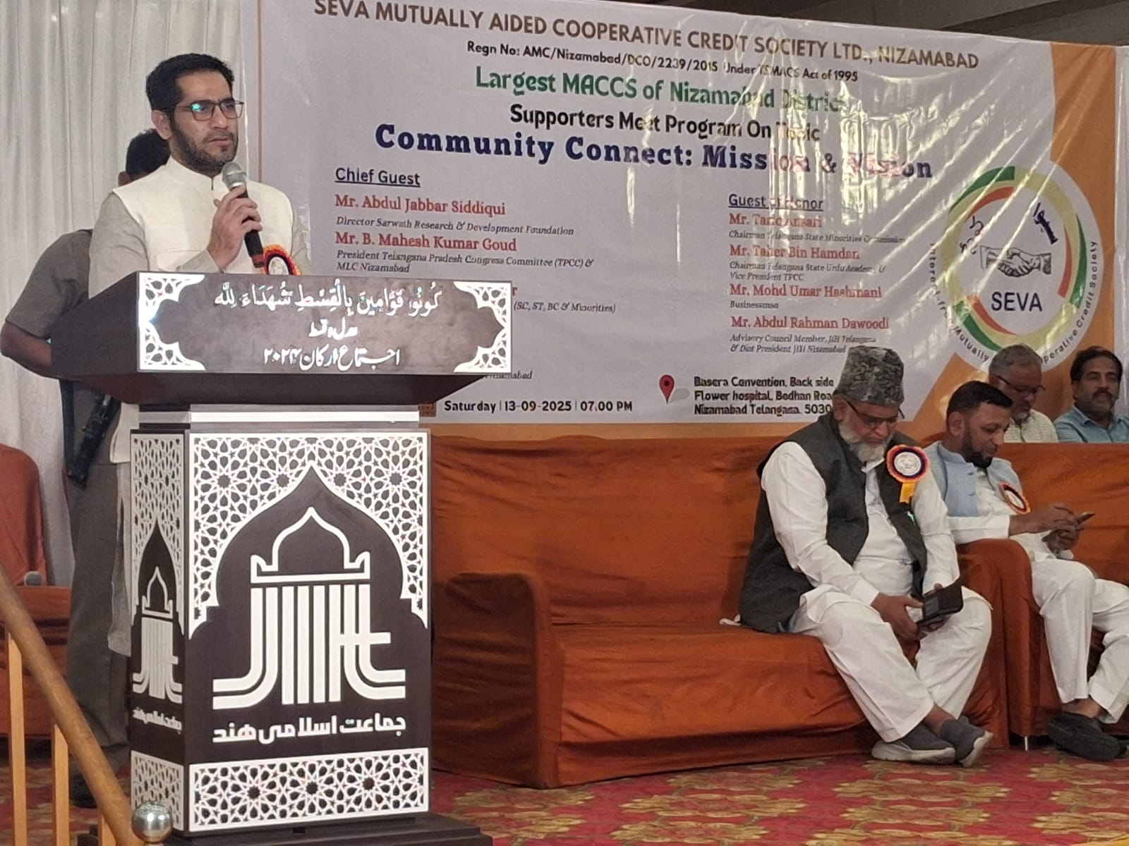 انہوں نے اظہار تاسف کرتے ہوئے کہاکہ سود کا لینا دینا عام ہوگیا ہے جس میں مسلمان بھی شامل ہے۔اس پروگرام میں امرائے مقامی جماعت اسلامی محمد غوث پاشا ہ حبیب نگر،عبدالرحیم احمد پورہ،خالد احمدی بازار کے علاوہ منظور محی الدین، ناظم ضلع رورل عمران خان سیوا سوسائٹی مینجرکے علاوہ عارف انصاری نے کامیابی سے نظامت کے فرائض انجام دئیے۔اس پروگرام میں سیوا سوسائٹی کے ممبران کی کثیر تعداد نے شرکت کی۔ بعد ازاں تلنگانہ ریاستی اقلیتی کمیشن چیرمین طارق انصاری اور عبد الجبار صدیقی ڈائر یکٹر ثروت ریسرچ اینڈ ڈویلپمنٹ فاؤنڈیشن کی شالپوشی و گلدستہ پیش کرتے ہوئے تہنیت کی گئی۔