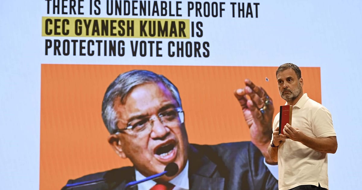 راہل گاندھی نے جمعہ کو سوشل میڈیا پلیٹ فارم ’ایکس‘ پر اپنی پریس کانفرنس کی 36 سیکنڈ کی ایک ویڈیو شیئر کی۔ اس ویڈیو میں وہ بتاتے ہیں کہ کس طرح صبح چار بجے آن لائن درخواستیں دے کر ووٹروں کے نام انتخابی فہرست سے حذف کیے گئے۔