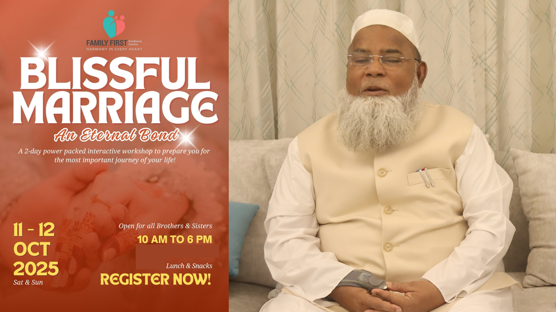 ازدواجی تعلقات کے حوالے سے باقاعدہ کونسلنگ کا رواج نہیں ہے، جس کے نتیجے میں گھریلو مسائل جنم لیتے ہیں۔ انہوں نے بتایا کہ سینٹر کے ذریعے اب تک تین سو سے زائد معاملات کو خوش اسلوبی سے حل کیا گیا ہے۔ ان کا کہنا تھا کہ یہ پروگرام خاص طور پر ان نوجوانوں اور بچیوں کے لیے ترتیب دیا گیا ہے جو نکاح کا ارادہ رکھتے ہیں یا جن کی حال ہی میں شادیاں ہوئی ہیں۔ پروگرام میں معینہ فیس رکھی گئی ہے تاکہ سنجیدہ افراد ہی شریک ہوں۔جو حضرات شرکت کے خواہش مند ہوں وہ فیملی فرسٹ گائیڈنس سینٹر (جامع مسجد بمبئی) سے رابطہ کریں۔ دریں اثناء دوروزہ پروگرام کے متعلق آل انڈیا مسلم پرسنل لا بورڈ کے صدر مولانا خالد سیف اللہ رحمانی نے اپنے پیغام میں کہا کہ مولانا و مفتی اشفاق قاضی اور ان کے رفقا ءمسلم معاشرے میں