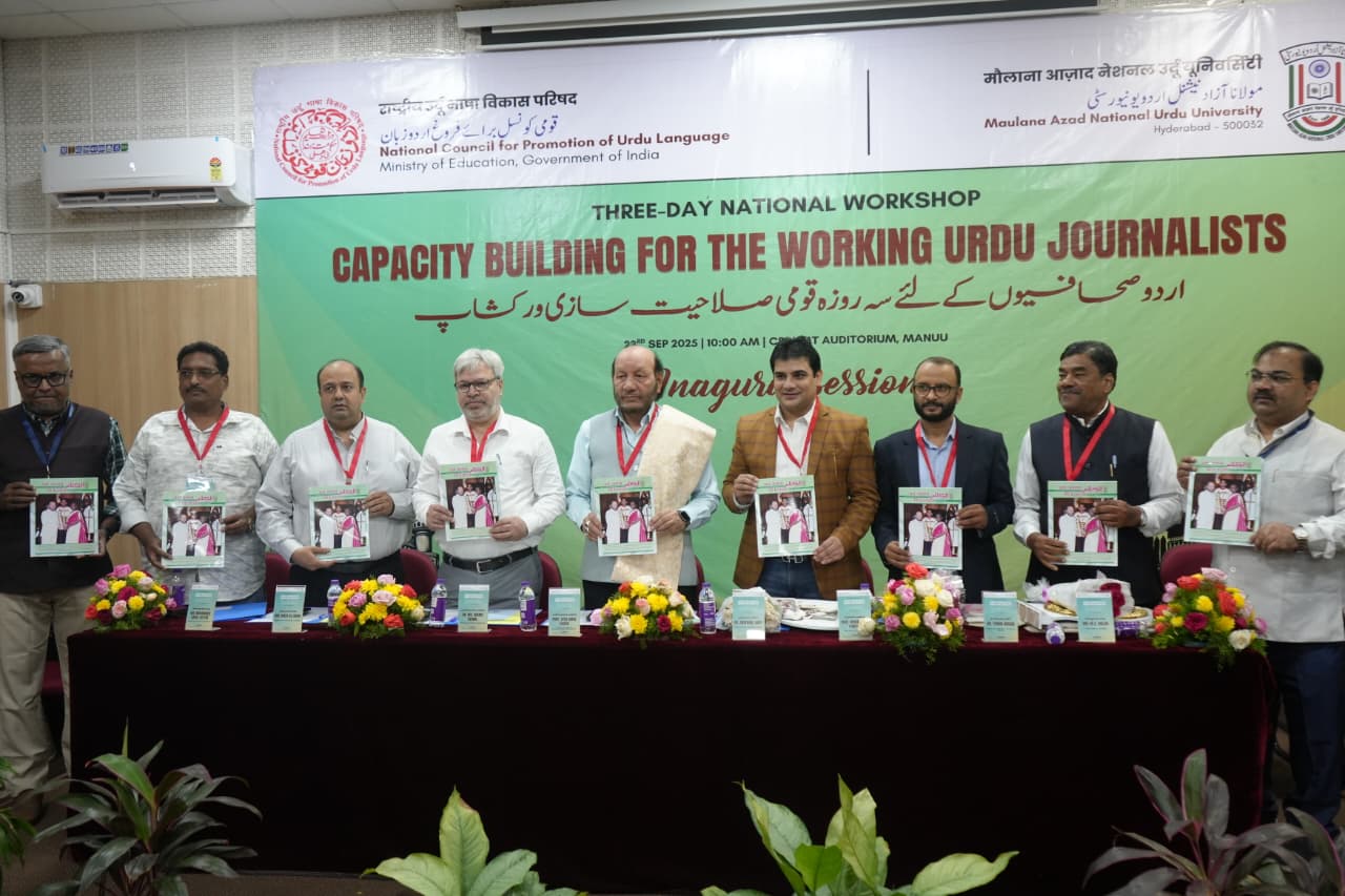 حیدرآباد، 23 ستمبر (پریس نوٹ) اردو صحافیوں کی تربیت کے لیے قومی کونسل برائے فروغِ اردو زبان پوری طرح سے سنجیدہ ہے۔ ان خیالات کا اظہار ڈاکٹر محمد شمس اقبال، ڈائرکٹر قومی کونسل برائے فروغِ اردو زبان نے کیا۔ وہ آج مولانا آزاد نیشنل اردو یونویرسٹی میں سہ روزہ ”اردو صحافیوں کے لیے قومی صلاحیت سازی ورکشاپ“ کے افتتاحی اجلاس میں خطبۂ استقبالیہ دے رہے تھے