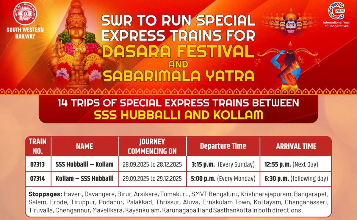 یہ ٹرینیں دسہرہ کے دوران مسافروں کے سفر کو آسان بنانے کے لئے چلائی جائیں گی۔