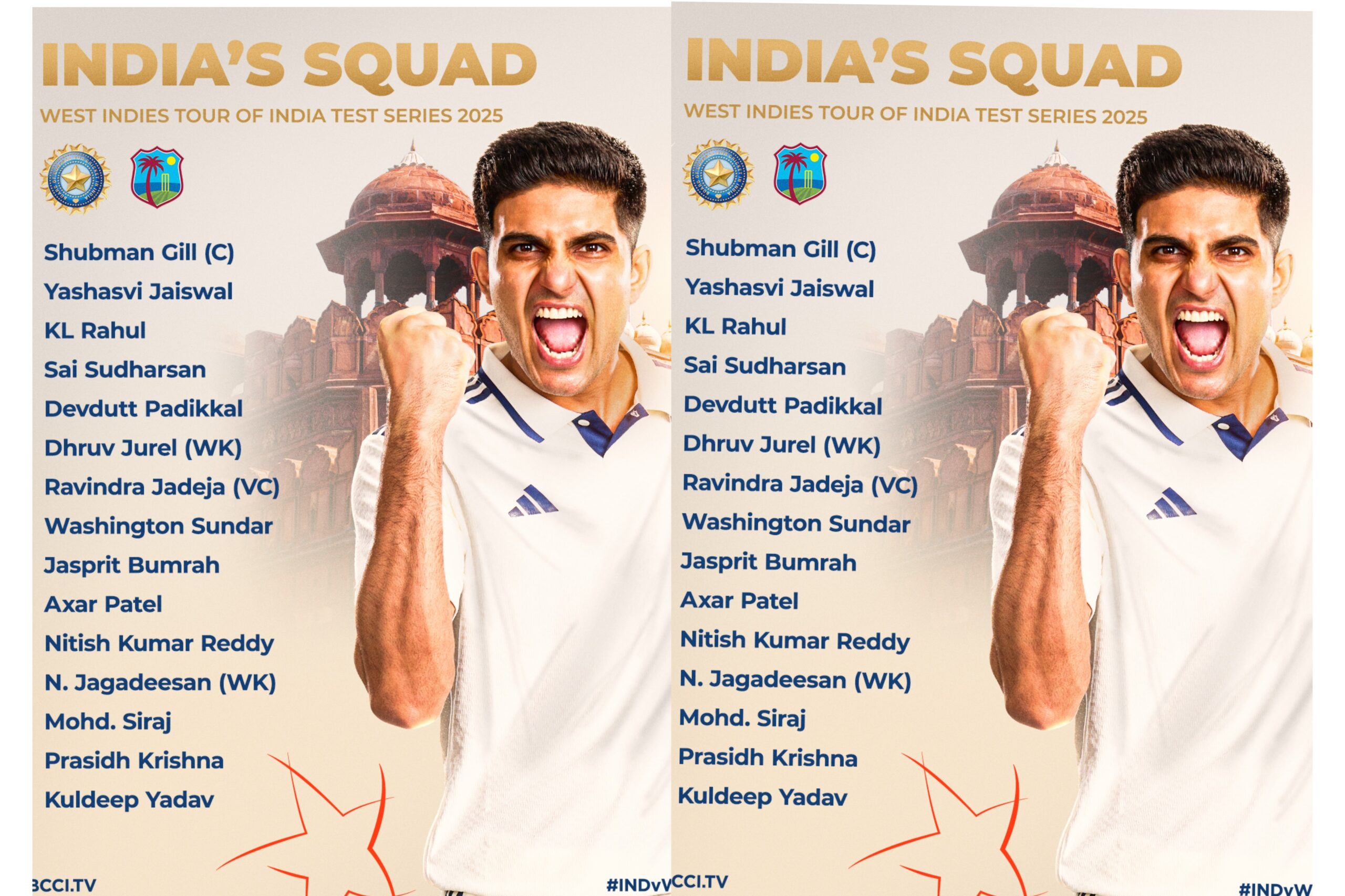 بھارتی کرکٹ کنٹرول بورڈ نے ویسٹ انڈیز کے خلاف ٹیسٹ سیریز کے لئے 15 رکنی ٹیم کا اعلان کر دیا ہے۔ ٹیم کی قیادت گِل کریں گے جبکہ جڈیجہ کو نائب کپتان مقرر کیا گیا ہے۔