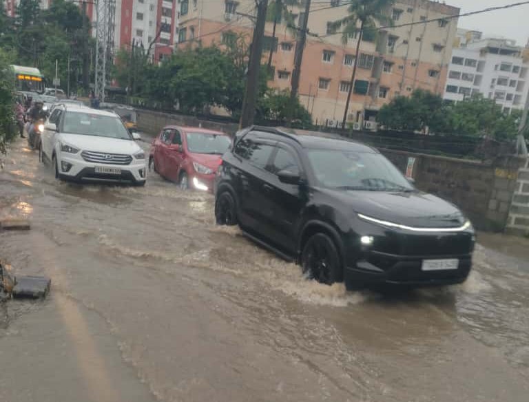 وجہ سے شدید ٹریفک جام ہوگیا۔سَنگاریڈّی سے اِسناپور تک سڑک کے دونوں اطراف کئی کلومیٹر تک گاڑیاں رکی ہوئی ہیں۔ سیلابی پانی میں گاڑیاں آہستہ آہستہ آگے بڑھ رہی ہیں جس کے سبب دفاتر جانے والے مسافروں کو شدید