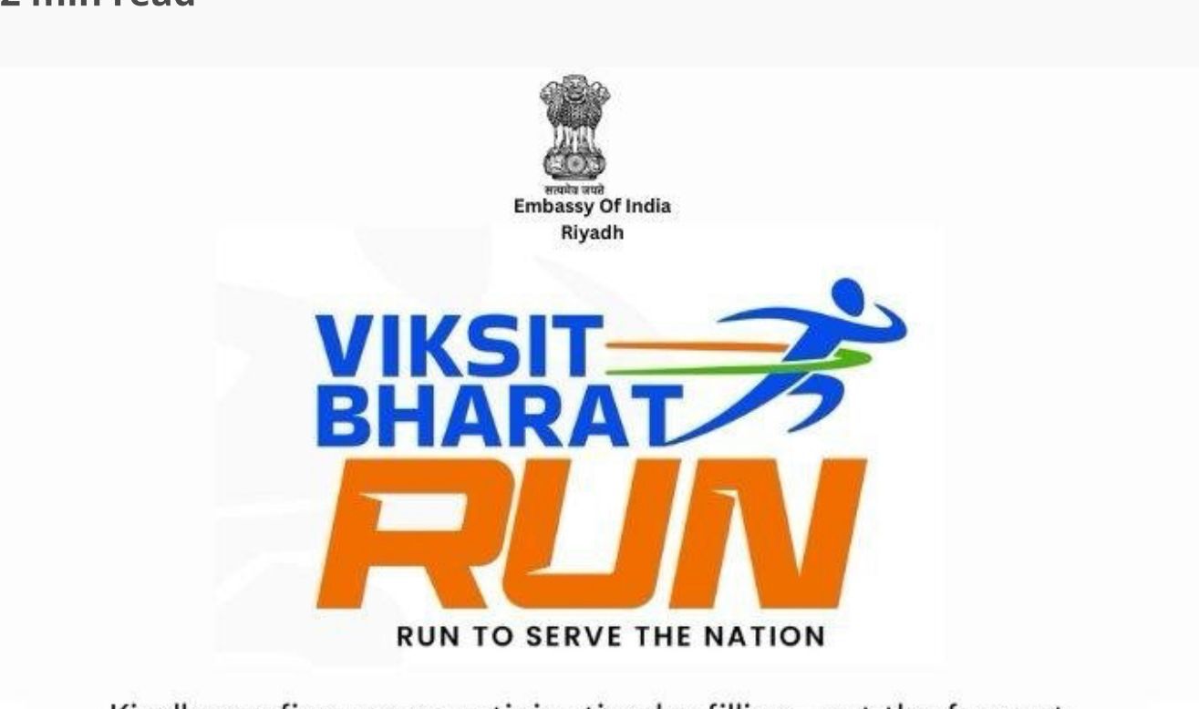 سفارت خانہ ہند ریاض بتعاون منسٹری آف یوتھ افیرز اینڈ اسپورٹس کے زیر اہتمام 27 ستمبر بروز ہفتہ 2025 شہر ریاض مین “وکست بھارت رن 2025” منعقد ہوگی۔