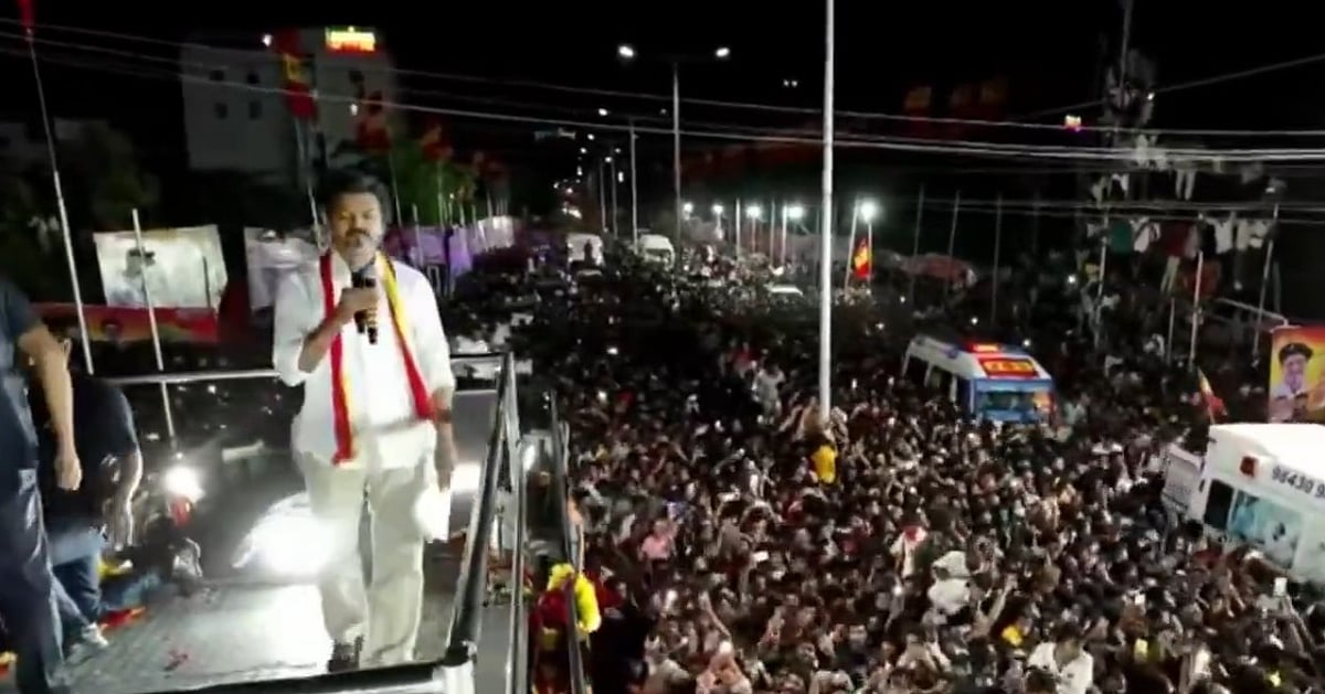 یہ حادثہ 27 ستمبر کو اس وقت پیش آیا جب وجے کی ریلی میں اچانک بجلی گل ہو گئی۔ عینی شاہدین کے مطابق اندھیرا چھا جانے پر لوگوں میں خوف و ہراس پھیل گیا اور شرکا متبادل بجلی کے انتظامات اور نکاس کے دروازوں کی طرف بھاگنے لگے۔ اسی دوران بھگدڑ مچ گئی جس میں خواتین اور بچوں سمیت 41 افراد جان سے ہاتھ دھو بیٹھے جبکہ 110 سے زیادہ زخمی ہوئے۔ سرکاری اعداد و شمار کے مطابق اب تک 51 زخمی صحتیاب ہو چکے ہیں۔
