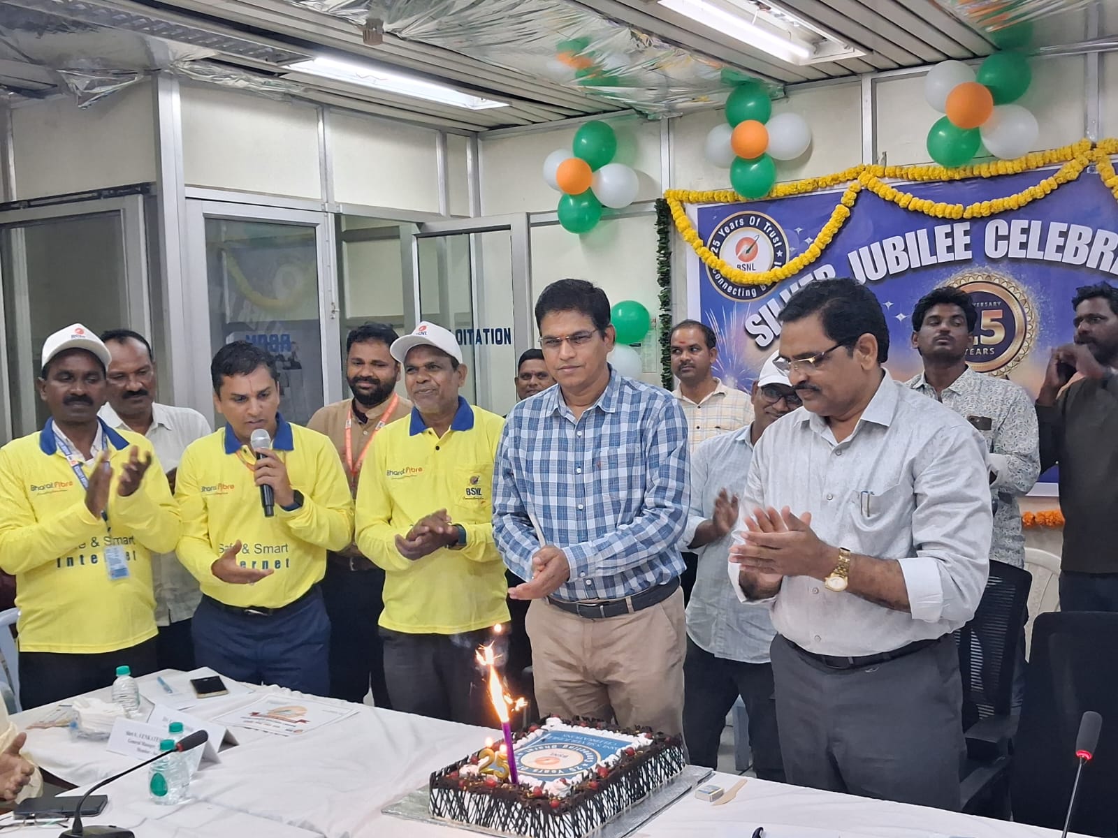 نظام آباد یکم اکٹوبر ( نمائندہ اردو لیکس) بھارت سنچار نگم لمیٹیڈ ( بی یس ین یل) نظام آباد ضلع جنرل مینجر مسٹر وی وینکٹیشور کی قیادت میں آج بی یس ین یل کے (25) سال کی تکمیل کے موقع پر سنجار بھون گاندھی چوک نظام آباد میں شاندار پیمانے پر سالگرہ تقریب مناتے ہوئے کیک کاٹ کر جشن منایا