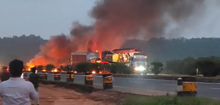 عادل آباد۔‌ ریاست تلنگانہ عادل آباد ضلع کے سیتاگونڈی۔واگھا پور کے قریب کل قومی شاہراہ پر دو لاریوں میں تصادم‌ کے بعد آگ لگ گئی۔