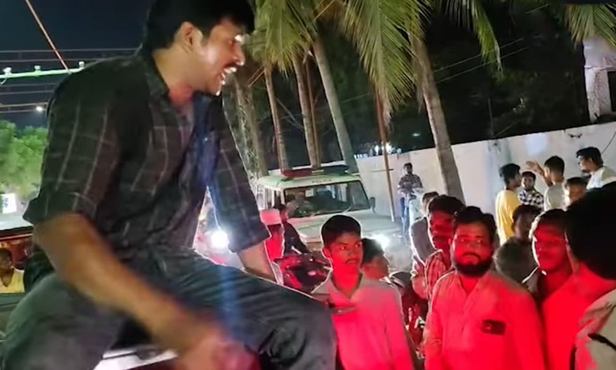 حیدرآباد: آندھرا پردیش کے کڑپہ ضلع میں ایک نوجوان نے شراب کے نشہ میں سڑک پر ہنگامہ آرائی کی۔ اطلاعات کے مطابق اس نے کل شب سڑک کے بیچ میں گاڑی کھڑی کر دی اور اس کے اوپر چڑھ کر شور شرابہ کرنے لگا۔
