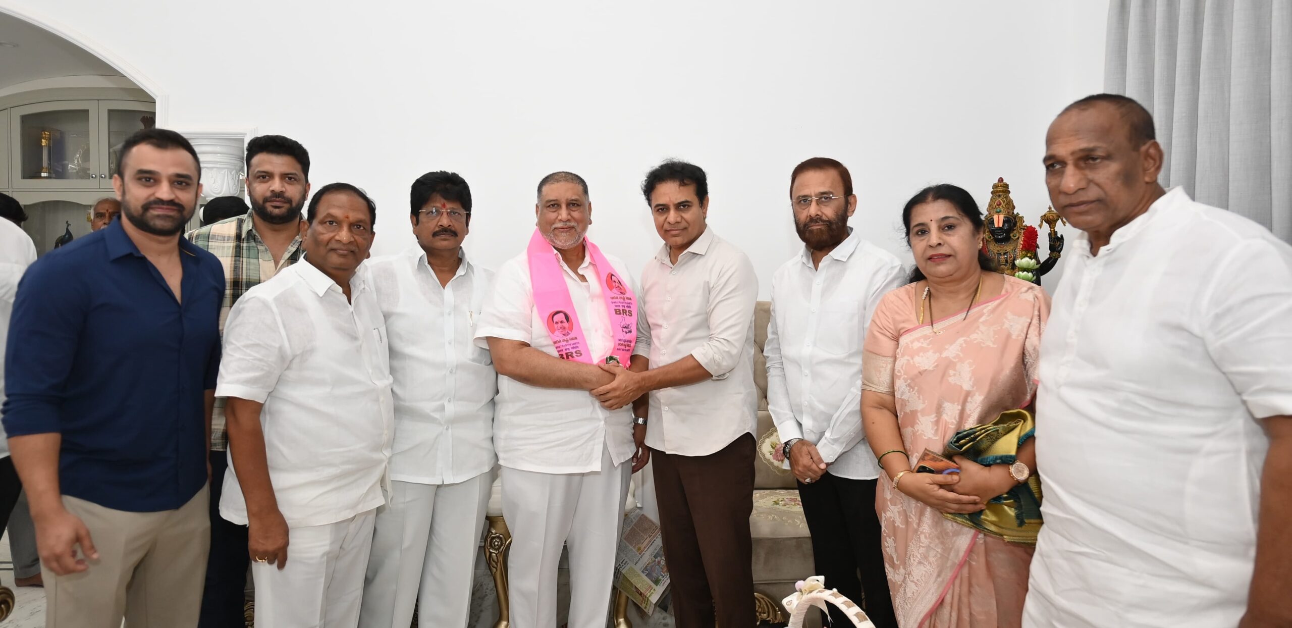 بی آر ایس کے ورکنگ پریسیڈنٹ کے ٹی راما راؤ (کے ٹی آر) نے نندینگر میں اپنے رہائش گاہ پر دونوں رہنماؤں کا پارٹی کے روایتی گلابی دوپٹہ پہنا کر استقبال کیا۔