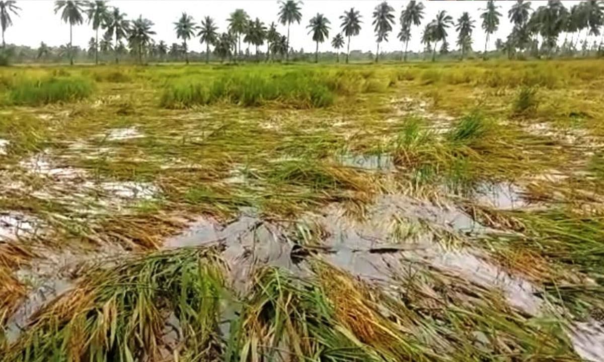 حیدرآباد: تلنگانہ کے متحدہ نلگنڈہ ضلع میں حالیہ بارش کے سبب کئی مقامات پر فصلیں پانی میں ڈوب گئی اور مارکٹ یارڈس میں رکھا اناج بھی گیلا ہو گیا۔ کئی علاقوں میں کپاس کی فصل مکمل طور پر متاثر ہوئی ہے۔