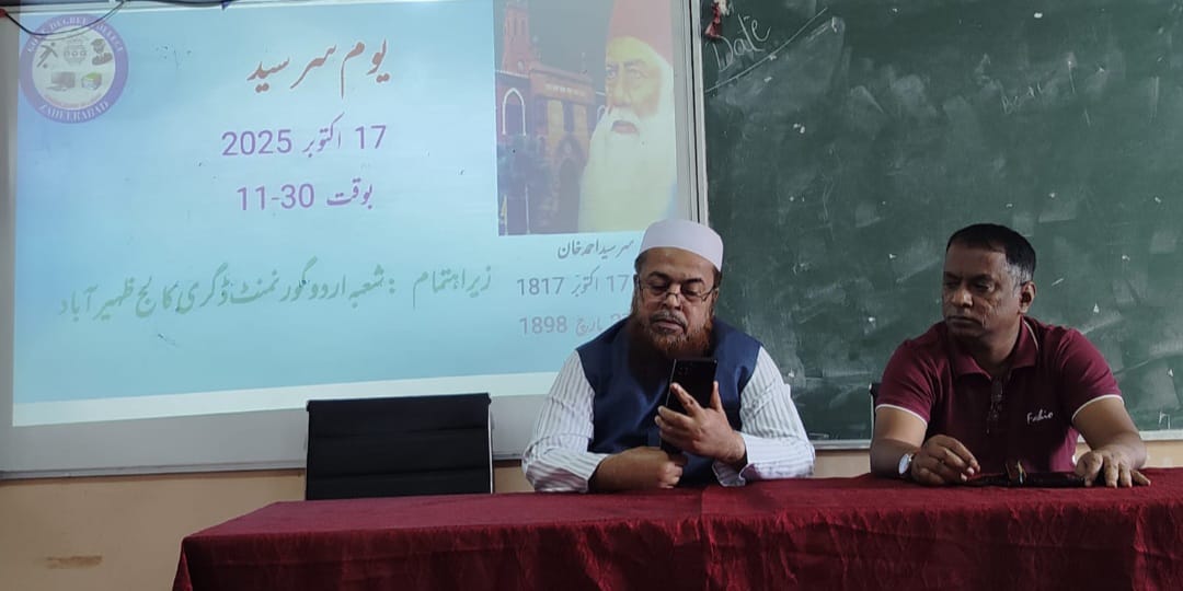 آج بھی ہندوستان میں سرسید کے افکار سے استفادے کی ضرورت ہے اور بہ حیثیت ہندوستانی قوم ہمیں تعلیم کو مشن بنا کر آگے بڑھنا ہوگا۔ نوجوان سرسید کی حیات اور ان کے افکار کا مطالعہ کریں اور موجودہ دور میں لوگوں کے جو مسائل ہیں انہیں حل کرنے کی کوشش کریں۔ ان خیالات کا اظہار پروفیسر محمد اسلم فاروقی پرنسپل گورنمنٹ ڈگری کالج ظہیر آباد نے کالج میں شعبہ اردو کے زیر اہتمام منعقدہ یوم سرسید سے خطاب کے دوران کیا۔ صدر شعبہ اردو ڈاکٹر عشرت سلطانہ نے اپنی خیر مقدمی