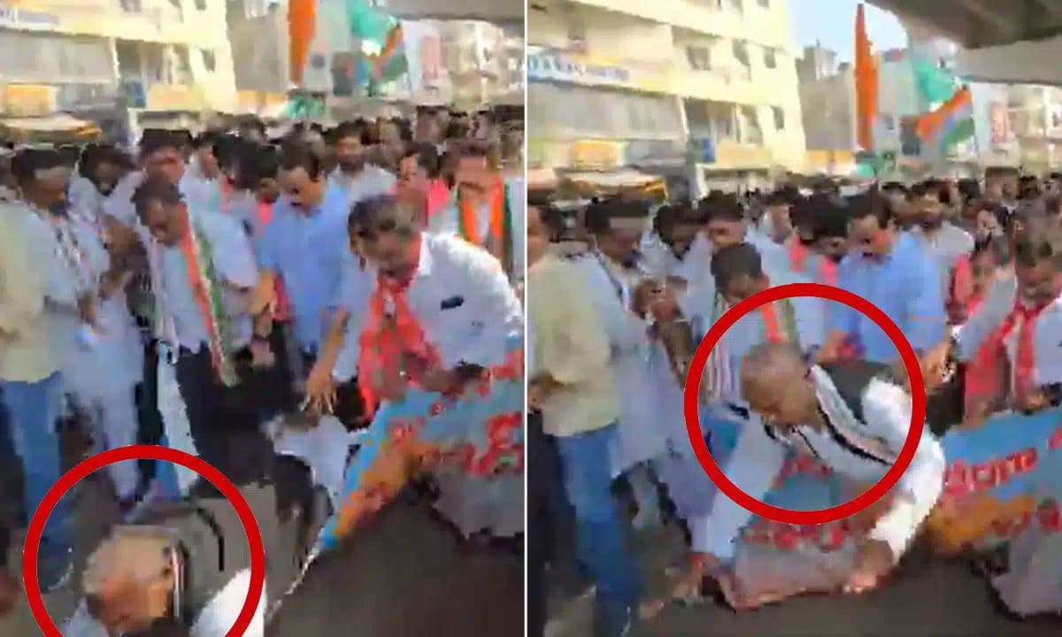 بندکے موقع پرنکالی گئی ریلی میں تلنگانہ کانگریس لیڈر وسابق رکن راجیہ سبھاوی ہنمنت راو بینر کے پیرمیں الجھ جانے کے سبب اچانک سڑک پر گرپڑے۔شہرحیدرآبادکے عنبرپیٹ میں یہ احتجاجی ریلی بڑے پیمانہ پرنکالی جارہی تھی۔