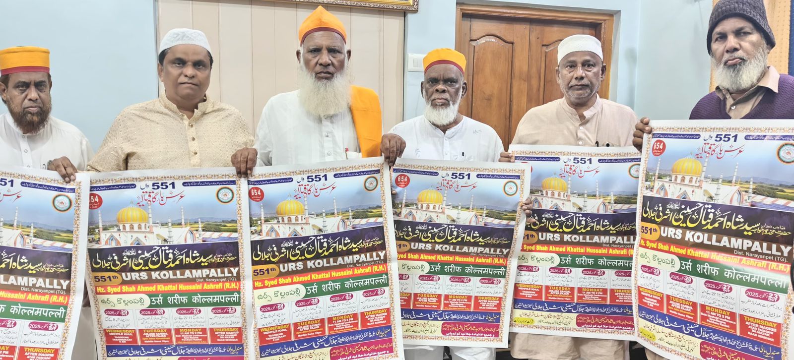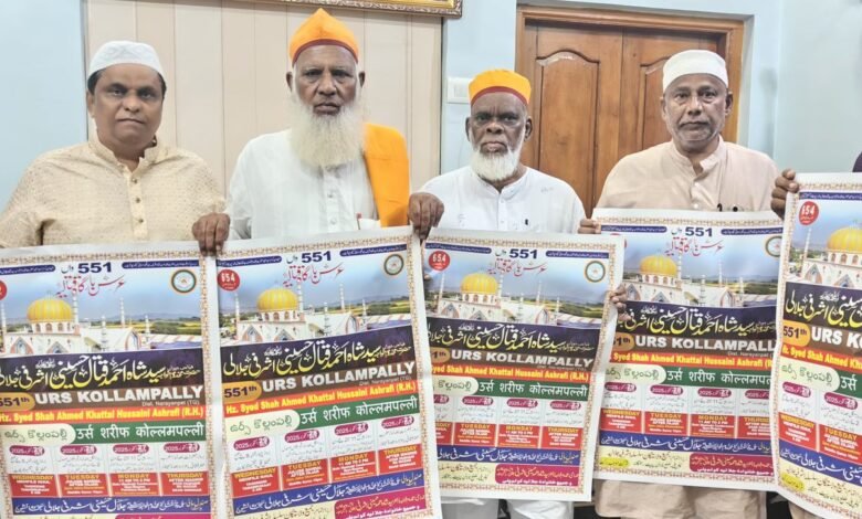 نارائن پیٹ: 24 اکتوبر ( پریس نوٹ/اردو لیکس) 551 واں عرس شریف مخدوم خواجہ سید شاہ احمد قتال حسینی اشرفی جلالی رح کولم پلی ضلع نارائن پیٹ کے موقع پر 27 اکتوبر بروز پیر سے عرس شریف کا آغاز ہوگا۔ اس ضمن میں عرس شریف کے پوسٹر کی رسم اجرائی عمل میں لائی گئی۔ مولانا ڈاکٹر سید احمد حسینی اشرفی جانشین سجادہ بارگاہ قتالیہ کولم پلی نے میڈیا کو تفصیلات سے واقف کروایا ۔