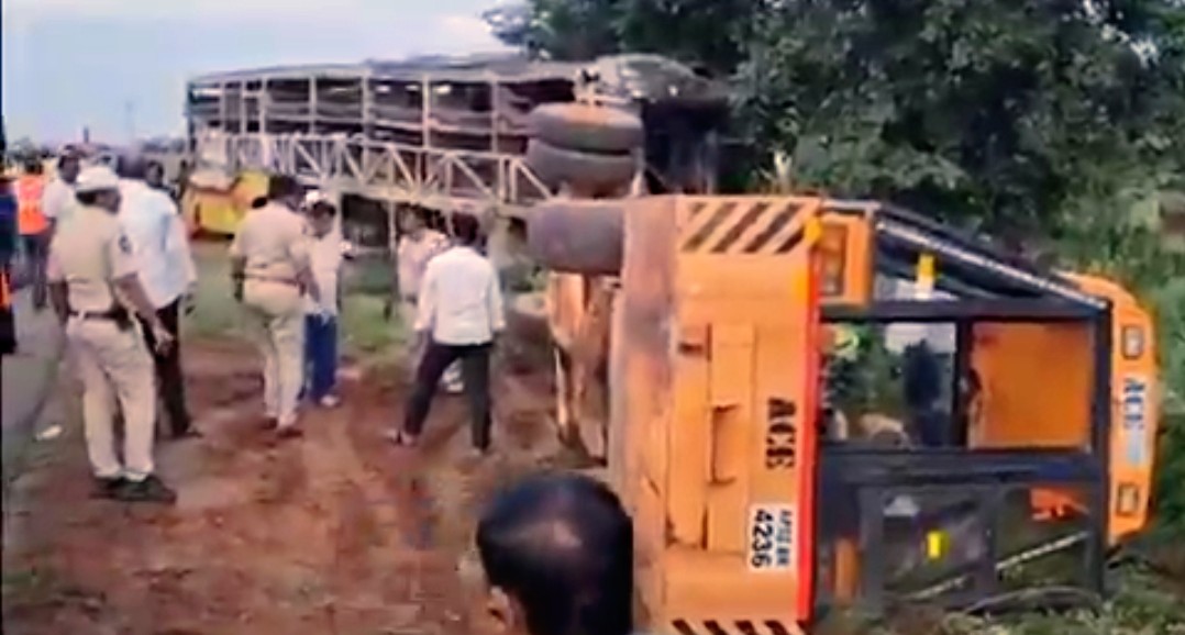 حیدرآباد: ریاست آندھرا پردیش کرنول کے مضافاتی علاقے چنناٹیکورو کے قریب جہاں بس حادثہ پیش آیا تھا اسی مقام پر ایک اور حادثہ پیش آیا ہے۔حادثے کا شکار ویموری کاویری ٹراویلس کی بس کو سڑک کے کنارے ہٹانے کے دوران کرین الٹ گیا۔