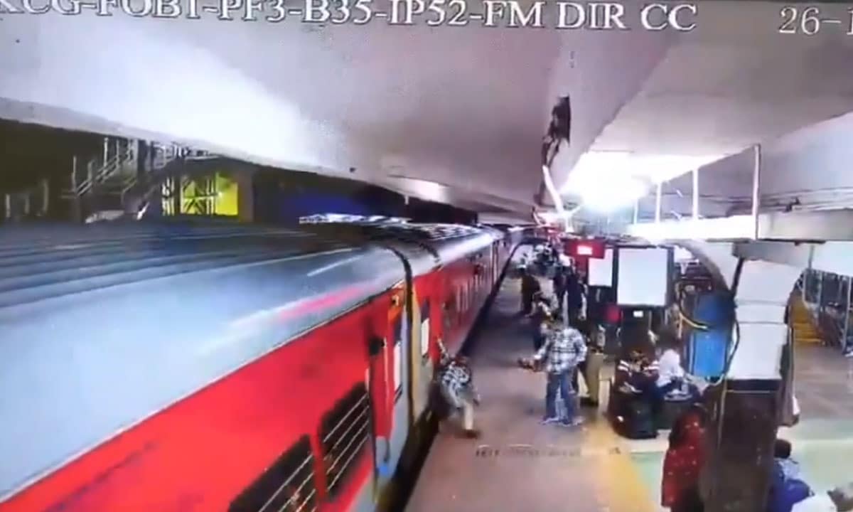 اسی دوران وہ ٹرین کے پہیوں کے نیچے آنے والا تھا کہ وہاں موجود مسافروں اور آر پی ایف کانسٹیبل نے فوراً اسے کھینچ کر محفوظ مقام پر پہنچا دیا۔ At the same time, he was about to come under the wheels of the train when the passengers and the RPF constable present there immediately pulled him to safety.