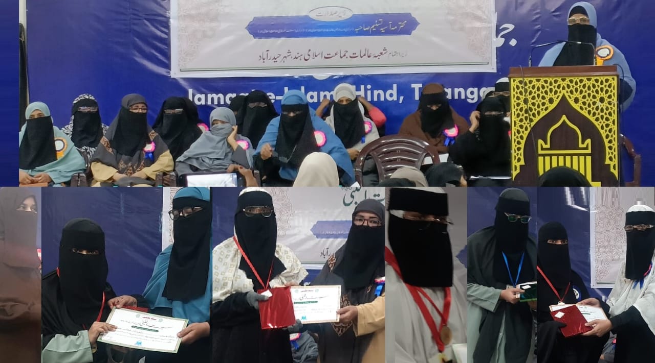 شعبہ عالمات جماعت اسلامی ہند، شہر حیدرآباد کے زیر اہتمام اختتامی جلسہ بعنوان ”موجودہ دور میں عالمات سے توقعات“ بضمن مقابلے جات سیرت النبی ﷺ(برائے طالبات دینی جامعات) وتقسیم اسناد و انعامات، لکڑ کوٹ، چھتہ بازار حیدرآباد پر منعقد ہوا۔پروگرام کی صدارت محترمہ آسیہ تسنیم صاحبہ (مرکزی اسسٹنٹ سکریٹری جماعت اسلامی ہند و مرکزی ذمہ دار شعبہ عالمات) نے فرمائی۔ اپنے صدارتی خطاب میں انہوں نے کہا کہ نبی کریم ﷺ ایسے زمانے میں مبعوث ہوئے جب دنیا ظلم، فساد، خونریزی اور اخلاقی زوال کا شکار تھی۔ آپؐ نے دنیا کو سب سے پہلا پیغام توحید کا دیا اور مساوات و عدل کی بنیاد پر ایک صالح معاشرہ تشکیل دیا۔