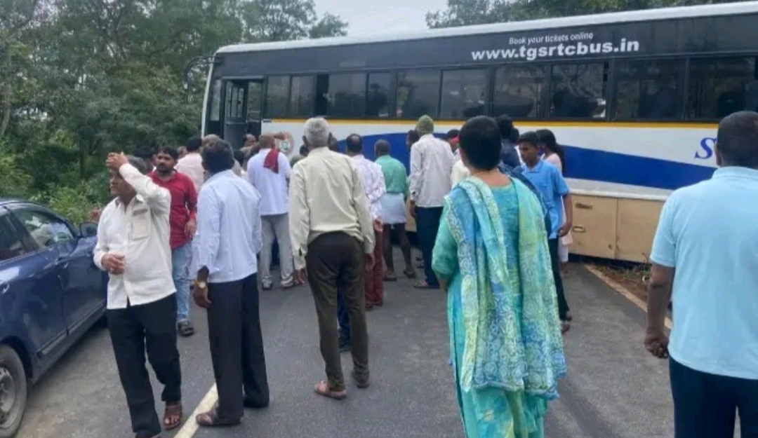 تلنگانہ کے نلہ ملا جنگل میں بس حادثہ — کار کو بچاتے ہوئے آر ٹی سی بس سڑک سے اتر گئی