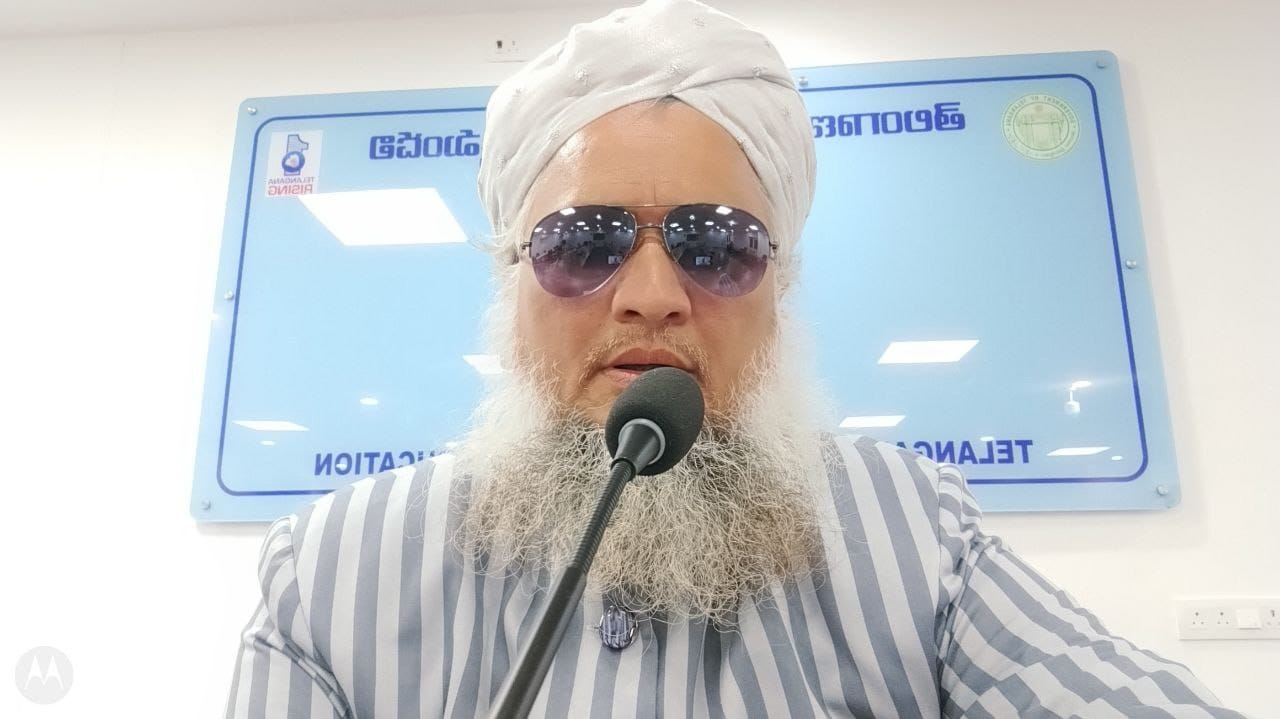 حیدرآباد، 7 نومبر (پریس نوٹ):خطیب وامام مسجد تلنگانہ اسٹیٹ حج ہاؤز نامپلی حیدرآباد، مولانا مفتی ڈاکٹر حافظ محمد صابر پاشاہ قادری نے آج وہ ابنے خطاب کرتےہوئے بتلایا کہ