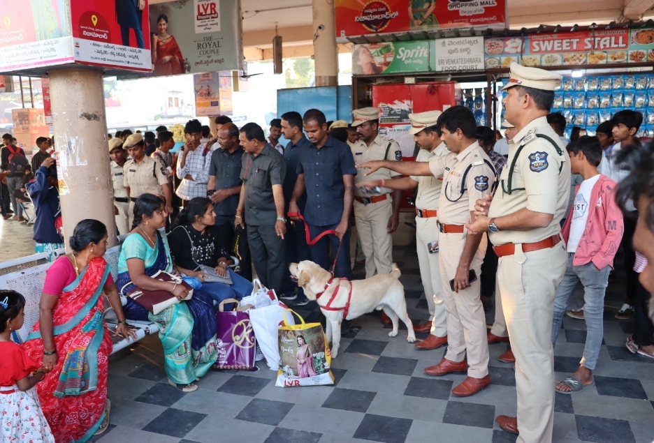 کاماریڈی۔ پولیس نے آج بس اسٹینڈ، ریلوے اسٹیشن اور مختلف بھیڑ والی جگہوں پر ڈاگ اسکواڈ کی خدمات لیتے ہوےسخت چیکنگ کی گئی۔