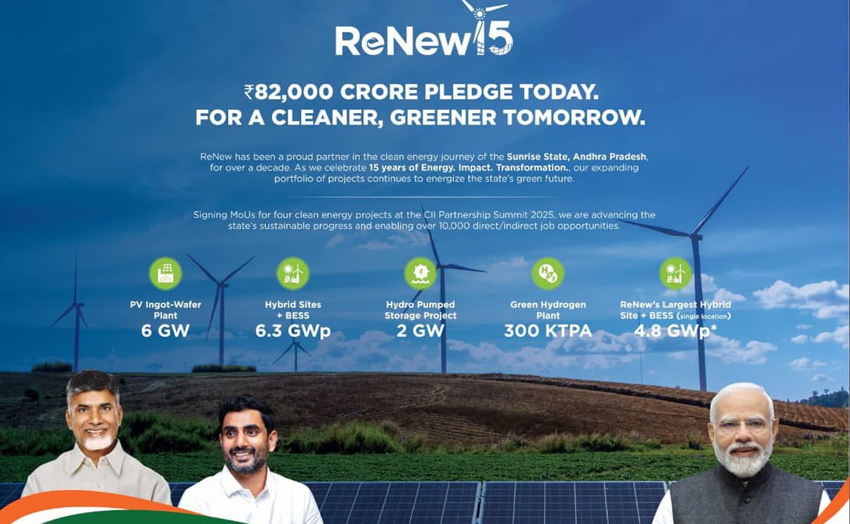 حیدرآباد: آندھرا پردیش میں سرمایہ کاری کو فروغ دینے کے مقصد سے سرگرم اتحادی حکومت کو پہلی بڑی کامیابی حاصل ہوئی ہے۔ ملک کی سرکردہ قابلِ تجدید توانائی کمپنی رینیو نے ریاست میں 82 ہزار کروڑ روپے کی خطیر سرمایہ کاری کرنے کا اعلان کیا ہے۔